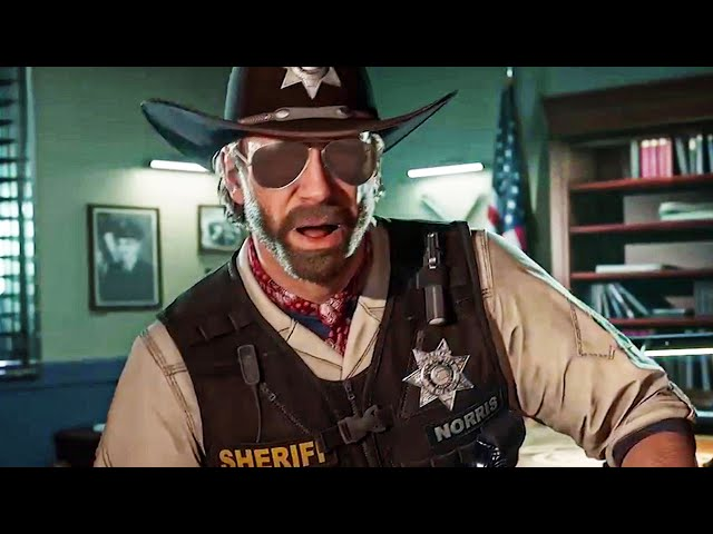 Dans les jeux plus récents, on peut citer Crime Boss Rockay City, un FPS de braquage en coop qui se la joue à moitié roguelite, on a également ce bon vieux Chuck (au milieu d'autres stars comme Danny Trejo et Michael Madsen) dans le rôle du Sheriff, dont le rôle est du coup de nous arrêter.