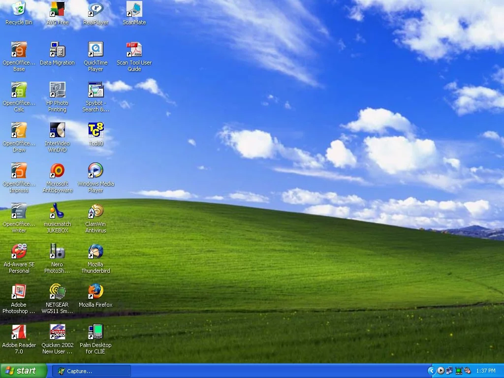 Côté suite logicielle, on avait tous sur nos PC familiaux les classiques Paint, Solitaire, Dame de Pique, Pinball et le Démineur, mais on avait aussi Microsoft Works, une version allégée de la Suite Office pré-installée avec Windows XP, sur laquelle beaucoup de ma génération ont dû effectuer leurs premiers travaux de classe sur l'ordinateur avant de les faire imprimer sur une imprimante à jet d'encre (d'où le "touche pas la feuille, tu vas faire baver les textes" quand elle sorttait encore fraichement de l'impression).