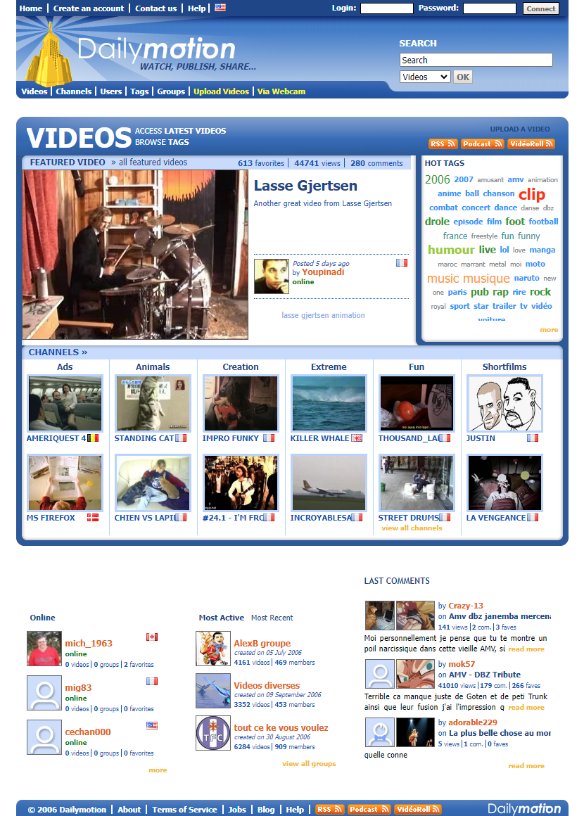 Comme dit plus haut, YouTube n'était pas encore arrivé en France, mais on avait DailyMotion, c'était notre plateforme de vidéos à nous sur les internets, c'est d'ailleurs dessus que très vite après 2006 ont démarré des chaînes comme le Velcrou (Norman, Hugo, Kemar) ou les membres de ce qui sera par la suite connu comme le NESBlog (la team JDG, Karim Debbache, la team 3615 Usul, RealMyope, CoeurDeVandale), et on avait du côté de JVC les premiers Gaming Live, des tests vidéos qui accompagnaient la review écrite des jeux, animés par Franck Guillaume et la personne ayant fait le test écrit (c'est en grande partie grâce aux Gaming Live qu'aujourd'hui vous pouvez lire ce blog car c'est ça à l'époque qui m'a donné envie de me mettre à la création de contenu sur internet).