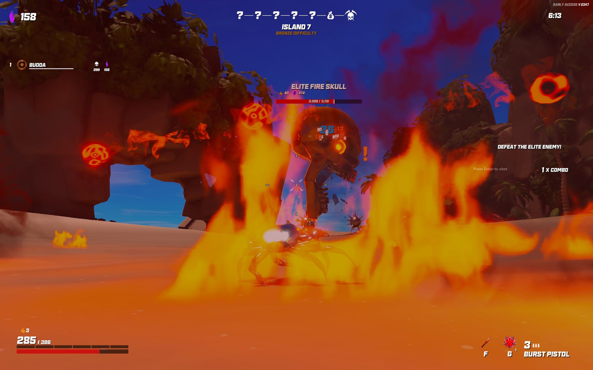 Notre périple est divisé en 4 cycles de 7 îles, les 5 premières étant des combats d'arène ou de survie, avec à la fin un ou plusieurs coffres contenant diverses upgrades au choix, qui nous donneront une upgrade, qui améliorera votre vie, votre régénération, ajouteront des effets passifs comme une aura de dégâts, ou ajouteront des effets à vos tirs comme des effets élémentaires ou de rebond.
