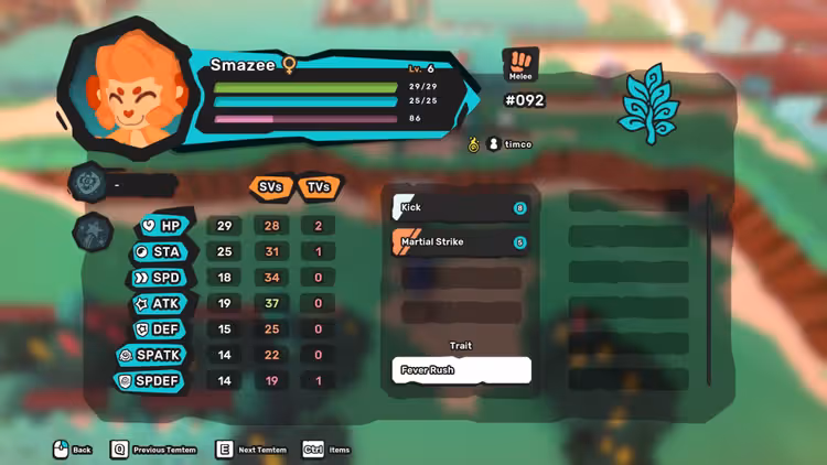 - Démuni : Le Matériel tenu par le Temtem n'est plus pris en compte.