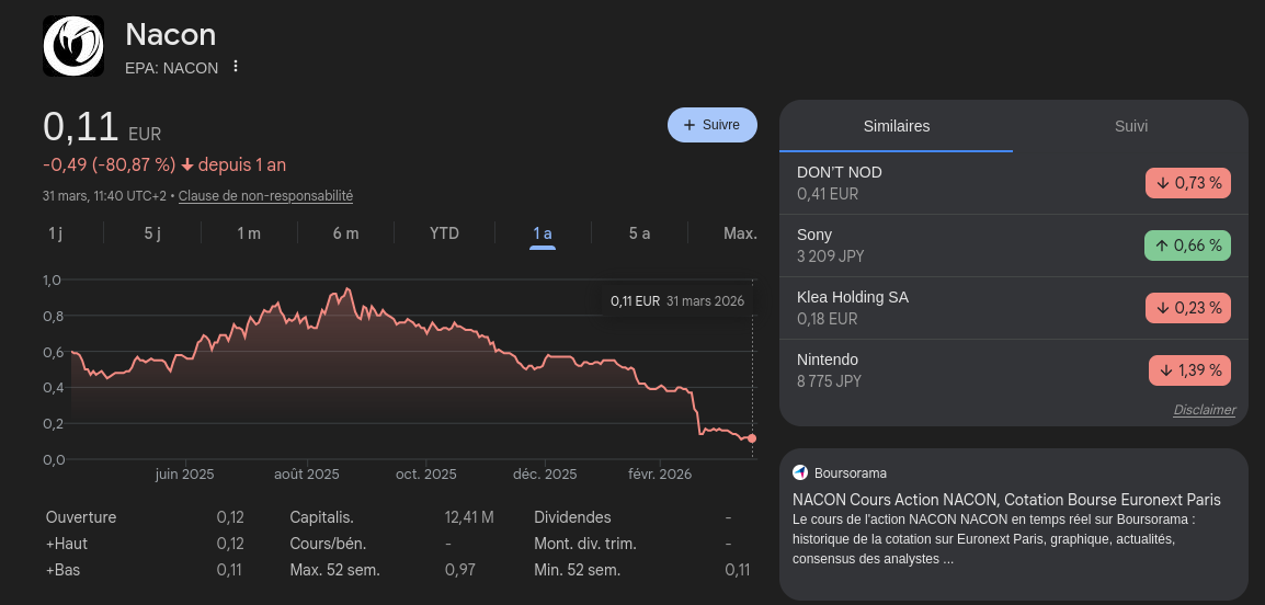 Nacon est le second plus gros éditeur de jeux en France, juste derrière Ubisoft, et donc s'il sombre, c'est toute une frange de l'industrie qui risque de disparaître, et de nombreux travailleureuses qui finiraient au chômage.