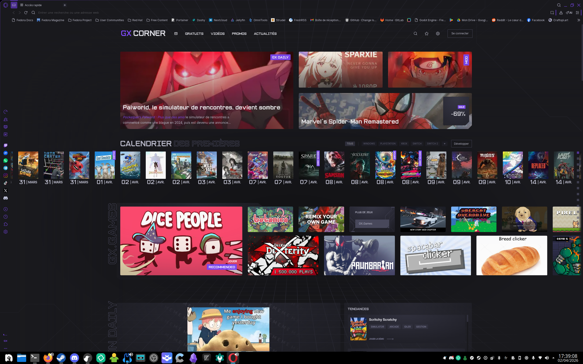 Bon déjà à première vue, en vrai c'est plutôt joli, bon des liens sponso vers des thèmes graphiques mis en avant, un calendrier de sortie de jeux avec pas mal d'indés entre deux AAA, des petits jeux sur navigateur qui sont proposés, jusque là rien à redire c'est clean.