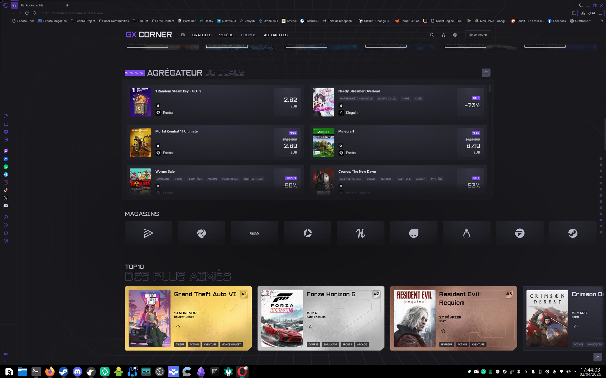 Allé on descend encore un peu et... parlons de l'agrégateur de deals... Comment dire ça poliment ? Instant Gaming, Eneba, G2A, Kinguin, Loaded, Fanatical, quasi QUE des putains de marchés gris de merde !?!? Ok je sais que le "g@m3rz" moyen sait pas que c'est pas très légal ces sites, mais quand même ! En dehors d'Humble, les seuls stores "Legit" listés, donc Steam, GOG, Epic et Bugisoft sont planqués tout à la fin ! Mettre en avant comme ça des Marchés Gris en GROS je trouve ça inadmissible putain !