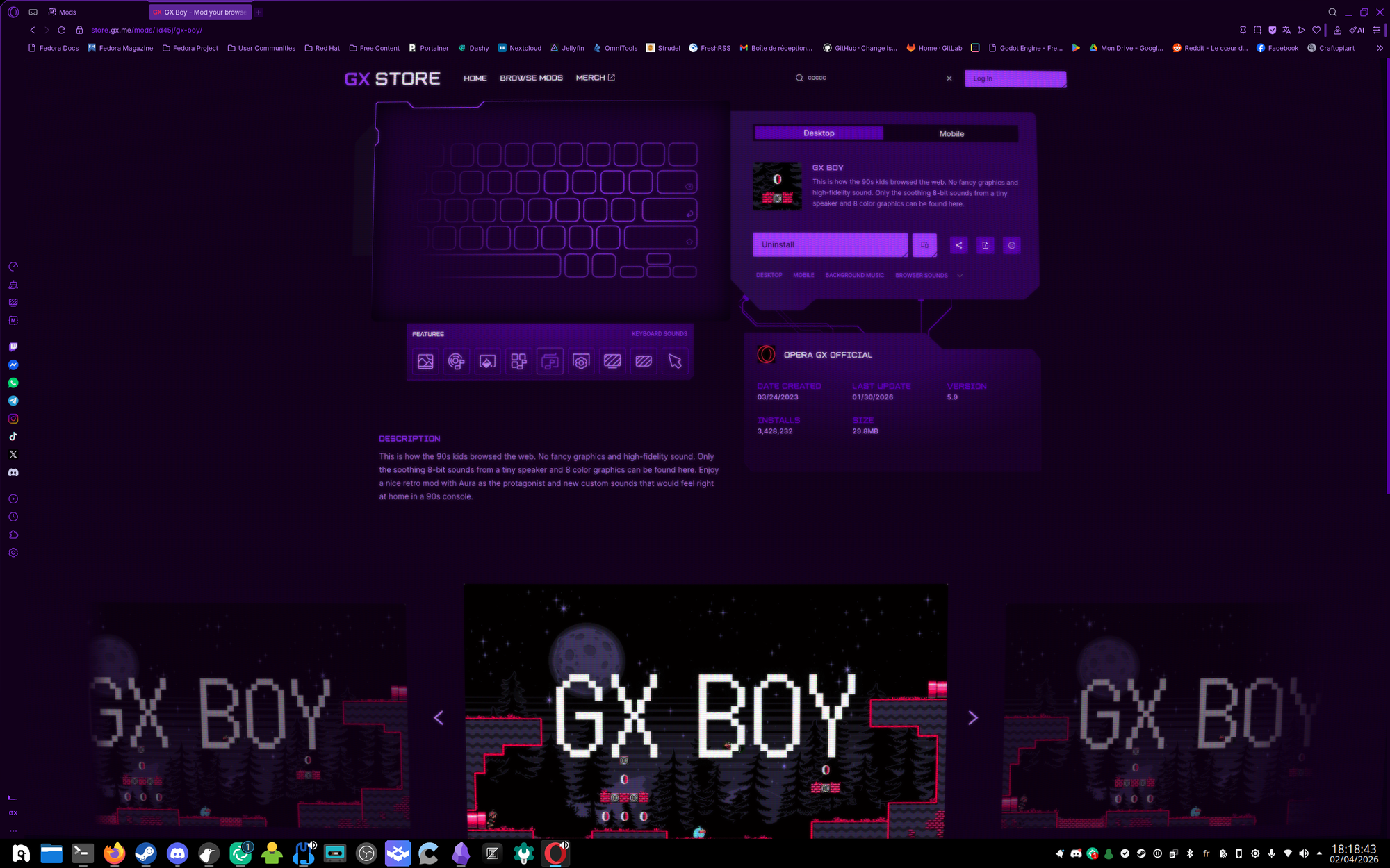 Du coup go aller voir le "GX Store", l'endroit où on récupère nos "Mods" pour notre navigateur, et là je suis plutôt surpris, et dans le bon sens du terme !