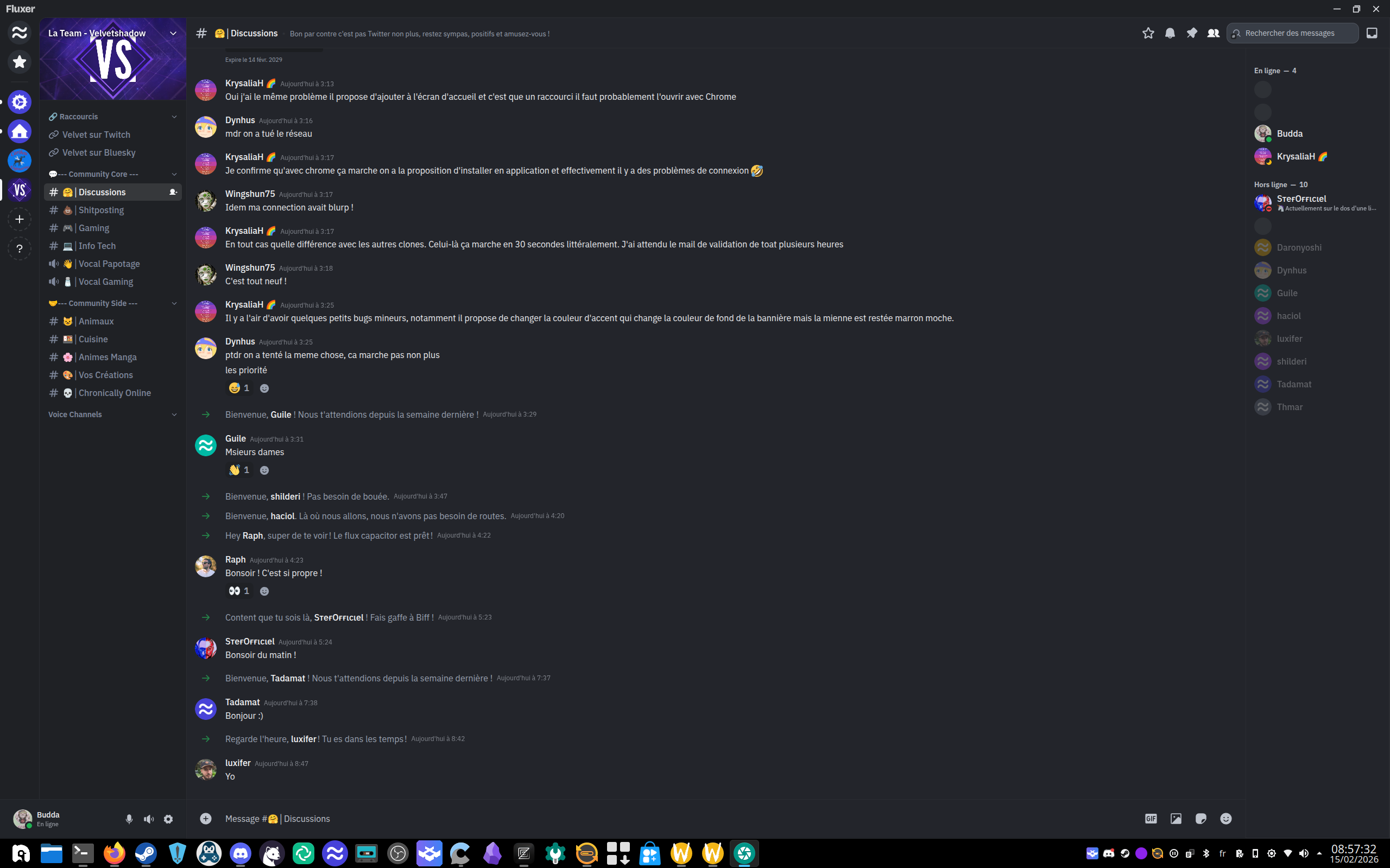 Perso je suis encore en pleine réflexion, de toute façon rien qu'avec mon Rich Presence, Discord sait déjà que je suis majeur (le scan totomatisé cité dans mon article de la semaine dernière, tout ça), Stoat et Fluxer semblent être les alternatives les plus "Discord-like", mais sont plombées par tout un tas de paramètres qui risquent de leur nuire à court terme et peut les tuer dans leur élan, et même si j'aime le principe du protocole Matrix, j'ai pas envie de faire le support technique pour les gens (d'abord cherchez sur Google, et après venez me poser la question), donc je verrai à l'avenir ce qu'il en est.