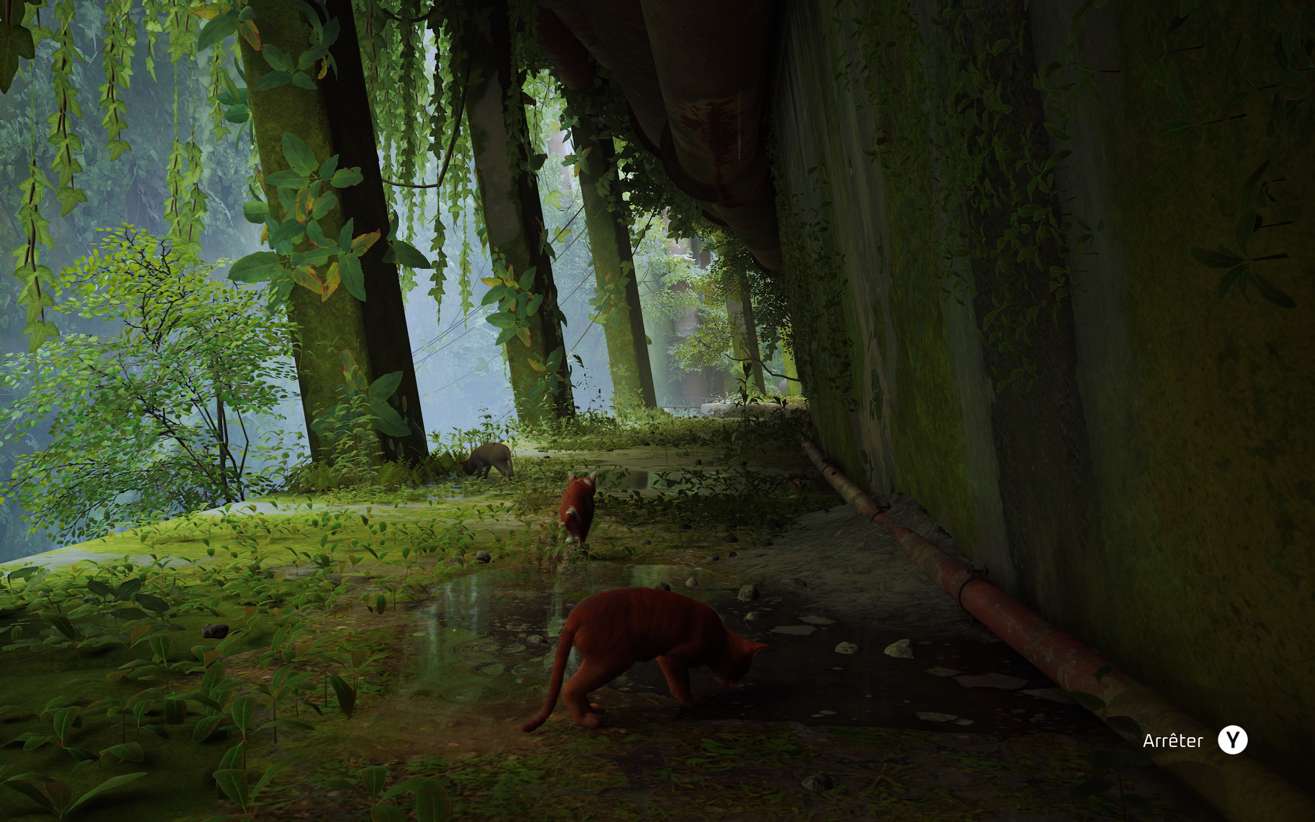 Stray est donc un de ces walking simulator où nous incarnons un petit chat roux, qui vit avec sa famille de chats dans ce qui semble être un ancien réseau de canalisations désaffecté (bon déjà j’ai commencé à avoir les larmes qui montent car un des chats ressemblait à Yoda, et un autre à Nina, mon premier chat qui a disparu il y a 23 ans en pleine période de chasse, pas besoin de vous faire le tableau vu que je suis campagnard).