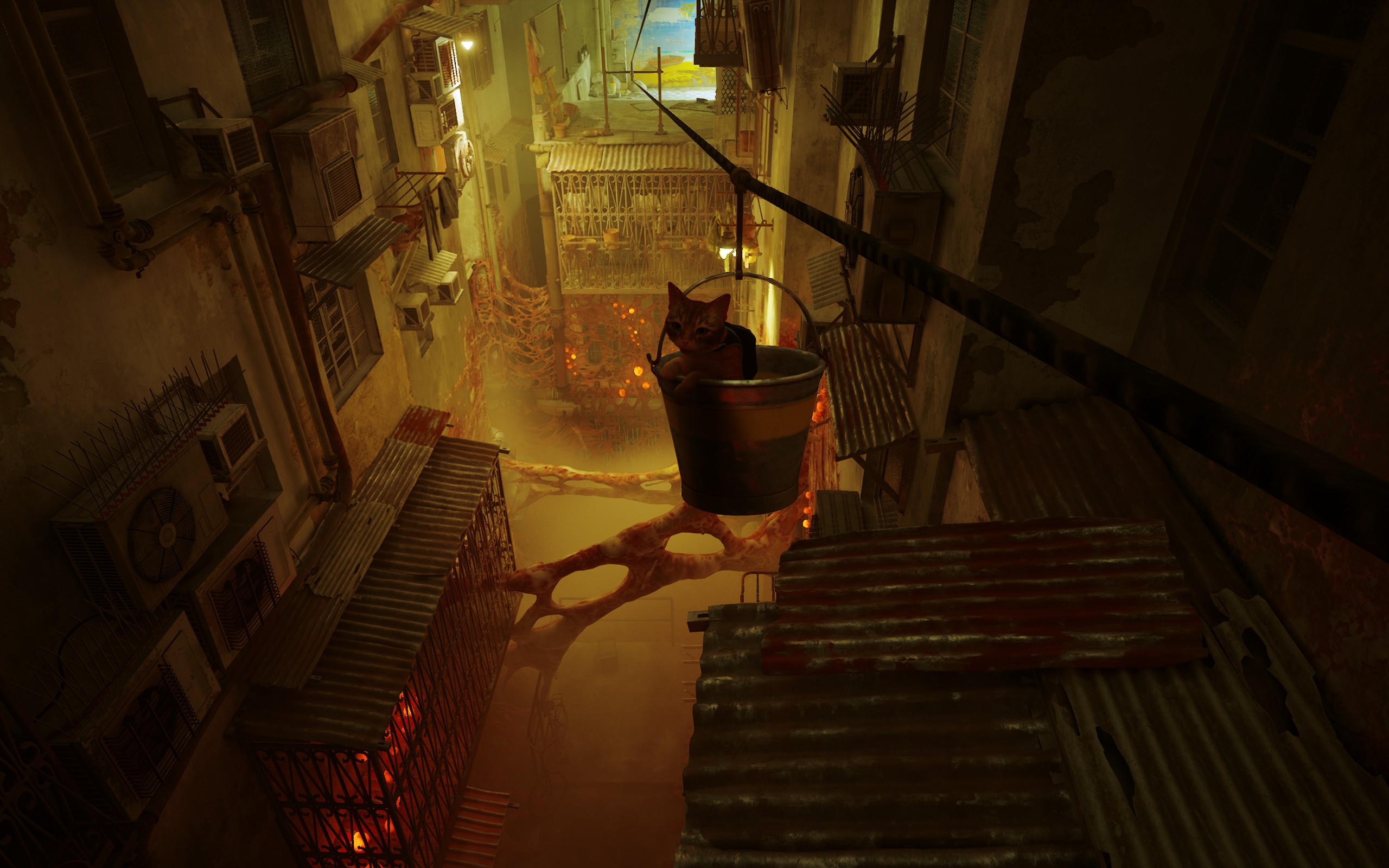 Stray est donc un jeu indé qui m’a plus que frappé dans le cœur, déjà par la suite d’événements qui ont amené ce jeu entre mes mains, mais aussi par son ambiance, son univers qui invite à l’exploration, n’étant pas un joueur de Walking Simulator, je ne m’attendais pas à être directement happé par le jeu malgré les crises de larmes que ça m’a causé (encore une fois par rapport aux événements cités).