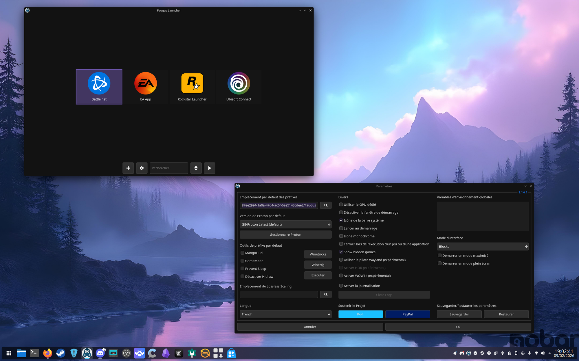 Et donc qu'est ce qu'il a de plus ce Faugus ? Là où Lutris était basé sur Wine-GE, Faugus a dès le départ été développé avec umu-launcher en tête (donc Proton), afin d'offrir une intégration la plus propre possible de base.