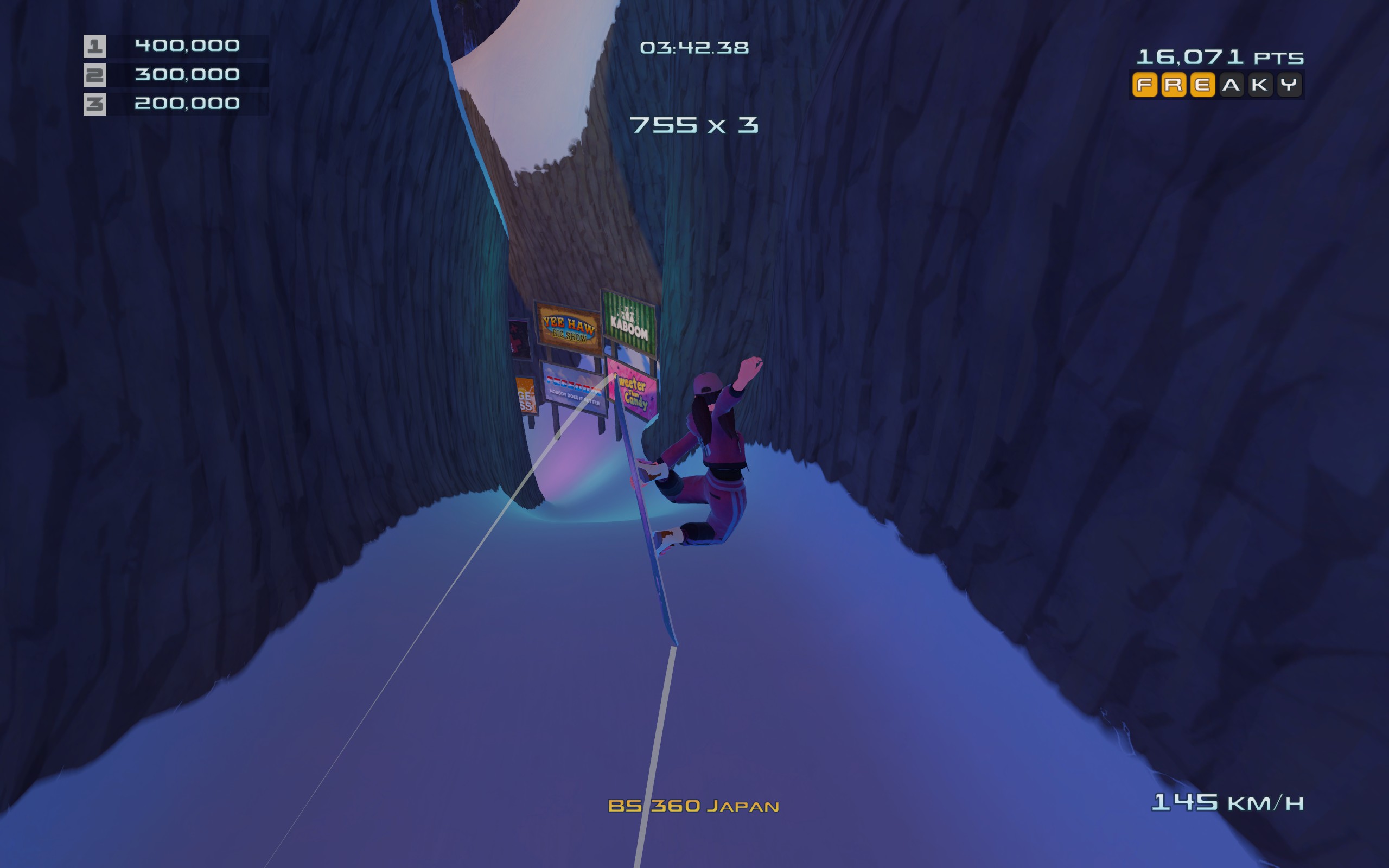 Alors le concept est simple : vous voyez les VIEUX SSX sur la PS2 ? Bah c’est tout pareil mais sur PC depuis fin 2024 ! Un bon gros jeu de Snowboard à l’ancienne, arcade comme on les aime !