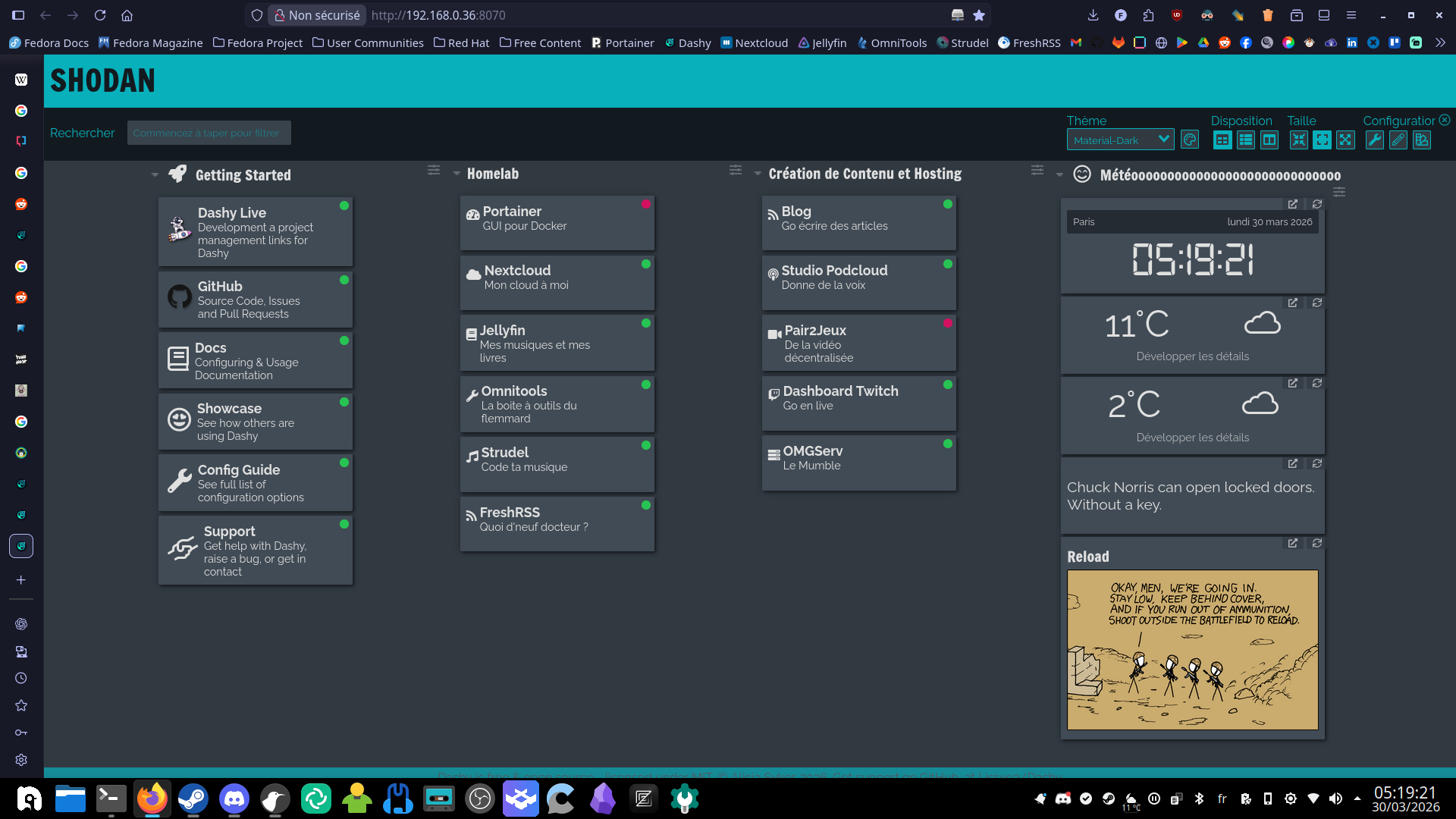 Dans les faits ça remplit le cahier des charges de iGoogle, mais ça veut encore dire se reposer sur un truc externe, qui risque donc de fermer, ou d'être modifié en profondeur pour prendre une direction qui ne nous plait pas, et vous me voyez venir à 150km (je pense qu'à la longue vous me connaissez), j'ai repéré quelques alternatives auto-hébergeables (genre si vous avez un homelab).