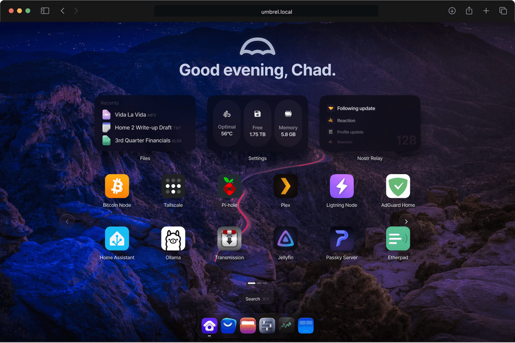 Une autre distribution, UmbrelOS (dont j'ai également parlé), propose de son côté un Dashboard un peu plus complet qui se rapproche déjà bien plus de ce que proposait iGoogle, avec une interface qui peut faire penser à la marque à la pomme, mais je vous rassure, fils unique aucun rapport.